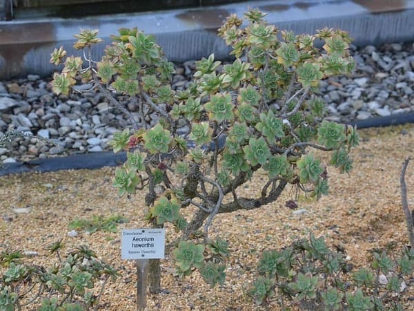Existe un híbrido de Aeonium haworthii denominado como «variedad kiwi» que presenta los márgenes de las hojas rojizos con tonos amarillentos.